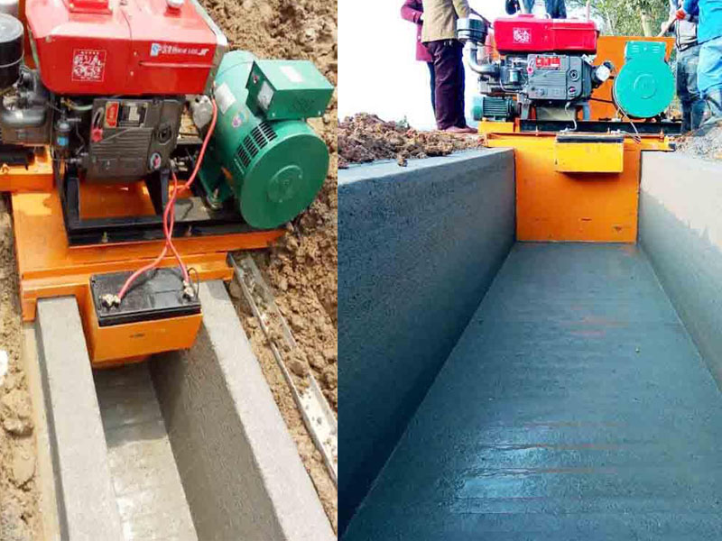 從上面的分析我們看的出來,混凝土的塌落度客戶配比的110mm是不符合要求的。正常矩形水渠滑膜機無論使用什么標號的混凝土。混凝土的塌落度要控制在6-9之間。而上面客戶使用11塌落度的混凝土所以造成這樣的問題。