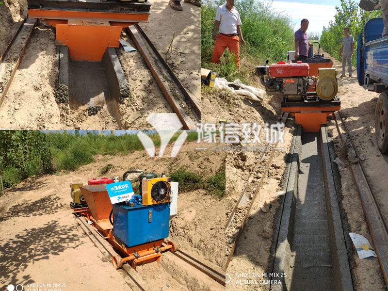 這種農村用的小水溝,使用水渠成型機是毫無問題的。因為水溝小,機器工作速度特別快。